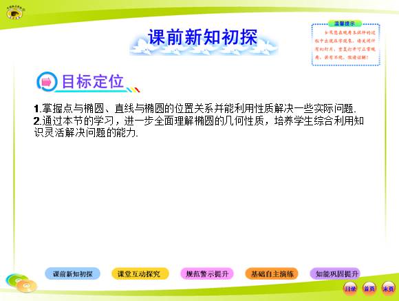 2012版高中全程学习夺冠方略配套课件:2.2.2.2椭圆方程及性质的应用(苏教版选修1-1)