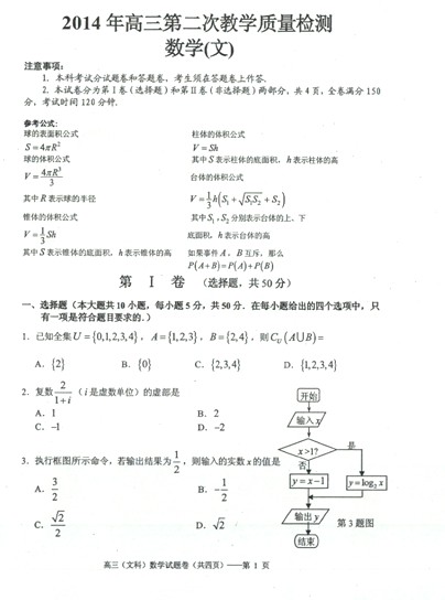 【2014湖州二模】浙江省湖州市2014届高三第二次教学质量检测(数学文)扫描版