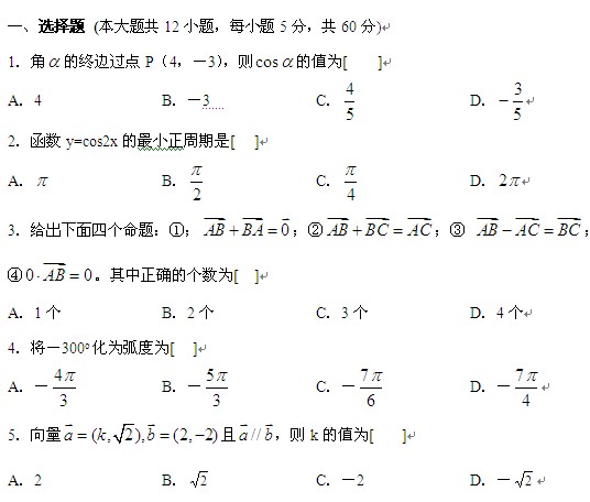 甘肃省天水市八中2013-2014学年高一下学期期中考试(数学)