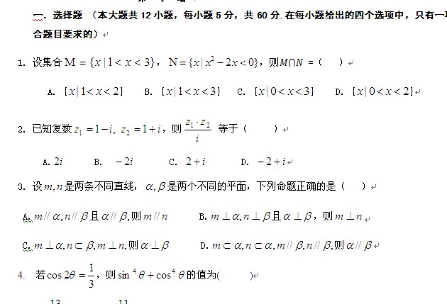 甘肃省张掖市肃南县第一中学2014届高三下学期期中考试(数学理)