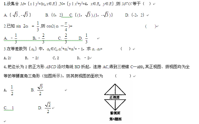 安徽省淮南市2014届高三第二次模拟考试(数学文)