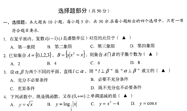 浙江省温州市2014届高三第三次适应性测试(数学文)PDF版