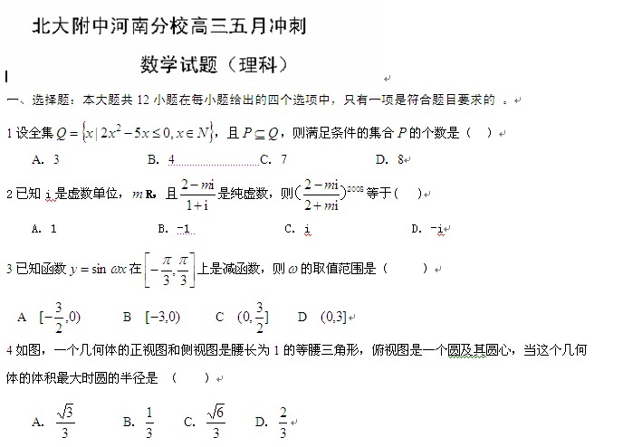 河南省北大附中河南分校2014届高三冲刺(数学理)