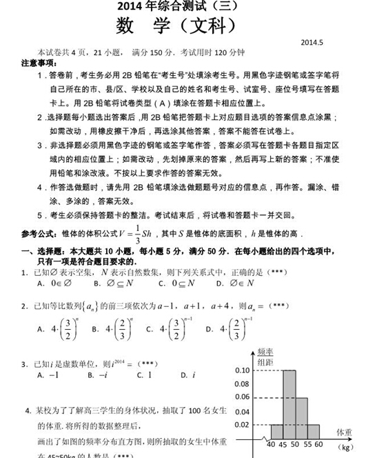 广东省华南师大附中2014届高三5月综合测试(三模)(数学文)扫描版
