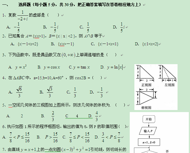 2014广东省高考压轴卷(数学理)Word版含解析