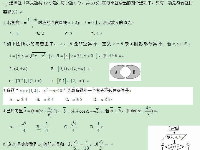 河北省正定中学2014届高三三轮模拟练习(五)(数学文)