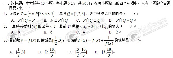 浙江省新安江中学、寿昌中学、严州中学2010届高三上学期联考(数学理)