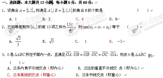 江西省鹰潭一中、新余一中2010届高三1月联考(数学文)