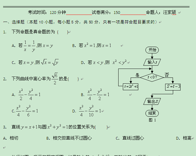 湖北省武汉外国语学校2014-2015学年高二上学期期中考试(数学理)
