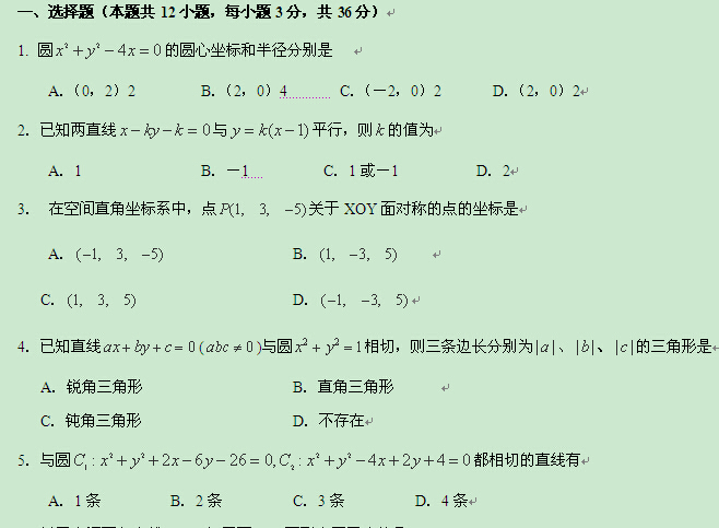 山西省大同市第一中学2014-2015学年高二上学期期中考试(数学文)