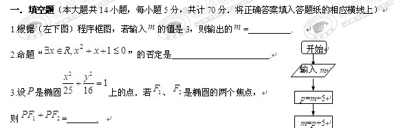 江苏省盐城中学09-10学年高二上学期期末考试(数学理)