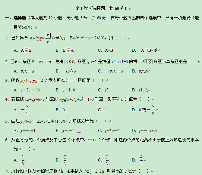 云南省玉溪一中2014-2015学年高二上学期期末考试(数学文)