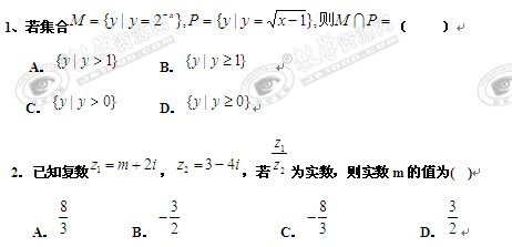 内蒙古赤峰二中2010年3月高三统一考试(数学理)